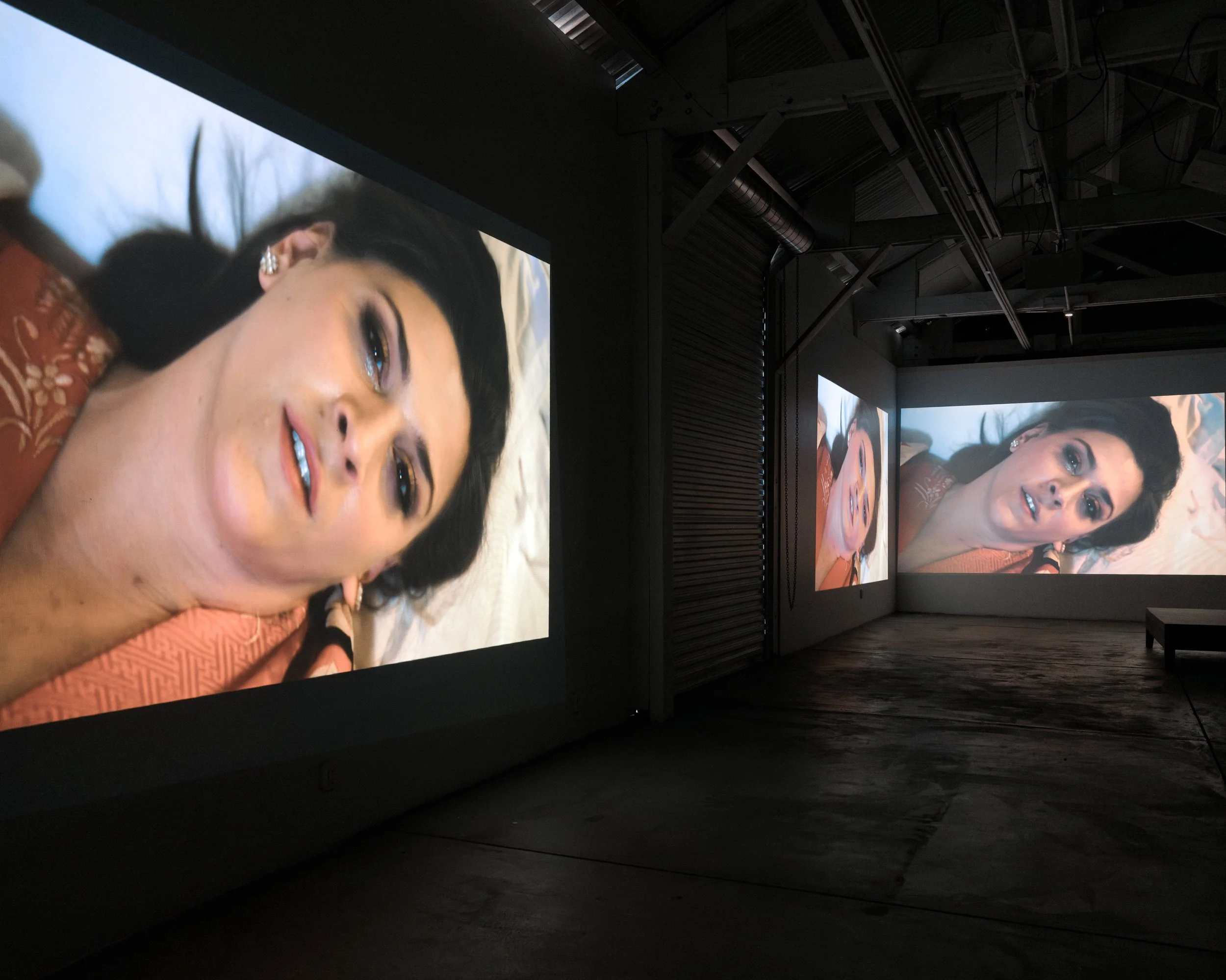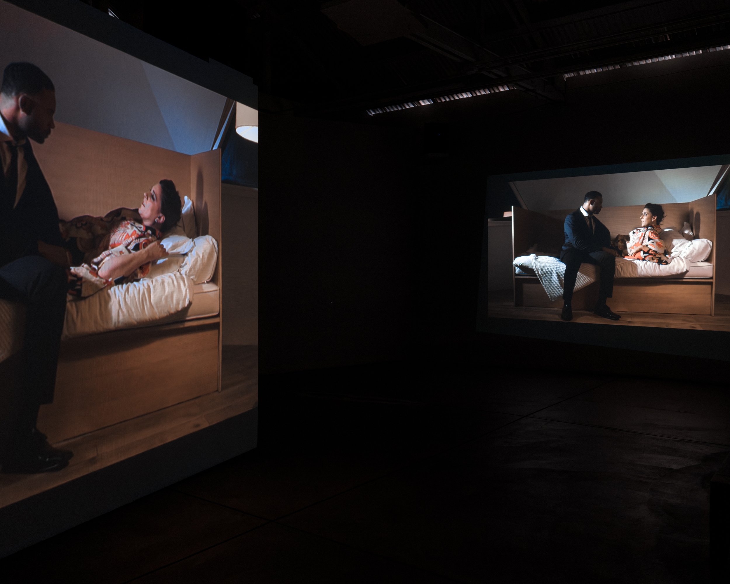 Beech’s moving-image practice has long drawn on familiar stylistic tropes from film noir, music videos, and advertising. Previous video works such as Sanity Assassin (2007) and Covenant Transport, Move or Die (2015) appear here in the background of several key scenes, initiating another kind of conversation across time and media. Segments of Map of the Bomb also nod to reality TV and corporate promotional videos, all genres that might present initially as seductive but ultimately reveal themselves to be illusory and alienating.
