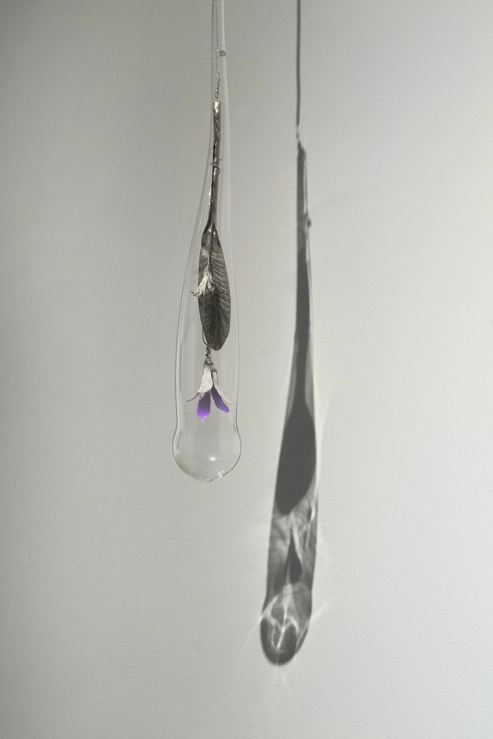 Archival pigment print, face-mounted and framed (20 x 30 in) and found object: cell cover with fake leaves, 12 feet x 45 in
