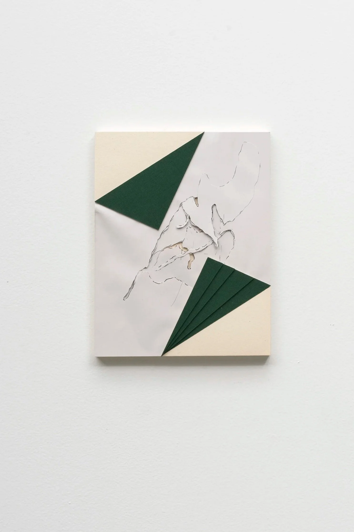 A triangular shape, referencing a form called Spiral Intrusion, frames a graphite drawing that comprises marks and cut outs made by tracing a moving hand.