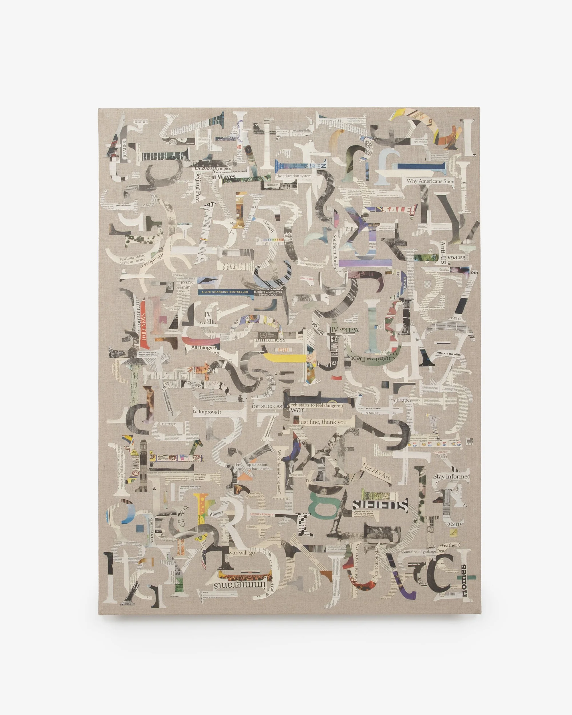 Newspaper, graphite, glue, linen, steel, bronze